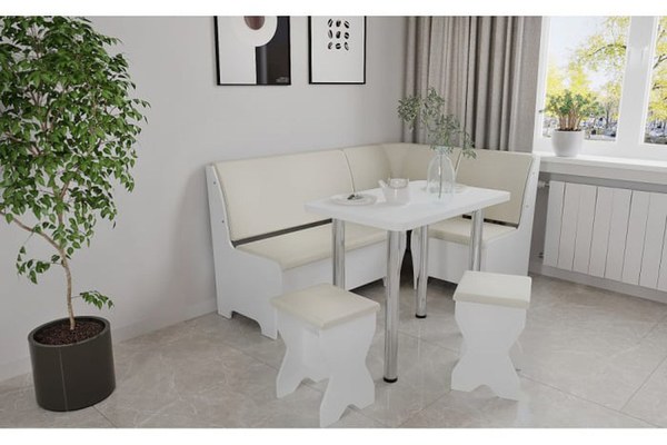 Set coltar bucatarie Tunis cu masa si 2 tabureti Alb Fildes