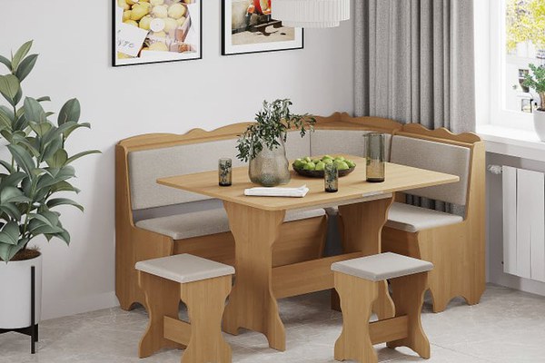 Set colțar Rodos, cu masă extensibilă și 2 tabureți, soluție practică, ideală pentru economisirea spațiului. Setul oferă confort, funcționalitate și spații utile de depozitare, fiind potrivit pentru utilizare zilnică. Dimensiuni Componentă...