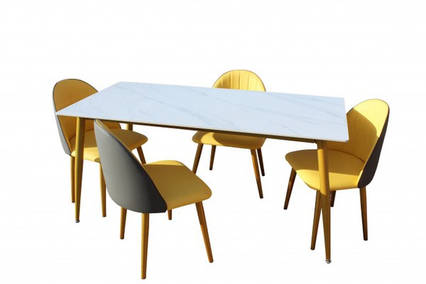 Set masa cu 4 scaune HA02 Gri Galben 160x80x74 cm