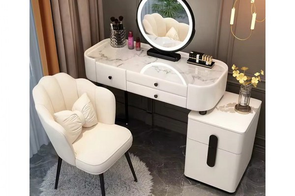 Dimensiuni: Masa de machiaj: 80 100 x 40 x 79cm Dulap: 35 x 40 x 53cm Scaun: 48 x 63 x 81cm Descriere: Această masă de toaletă are 4 sertare și un dulap de depozitare, oferind suficient spațiu pentru a vă ajuta să vă puneți toate...