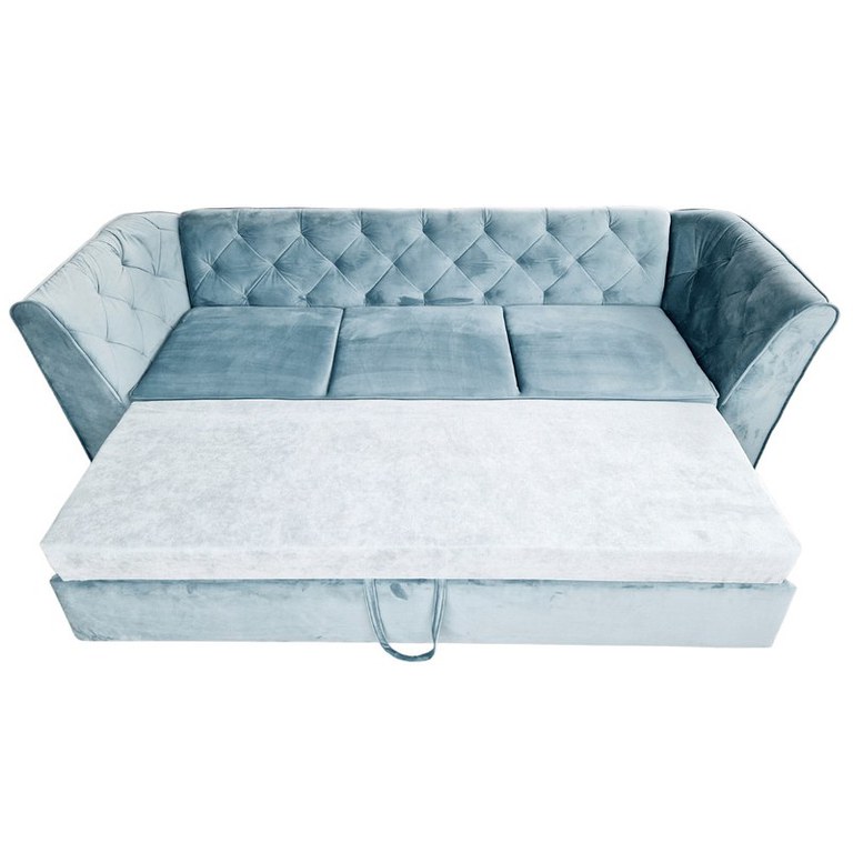 Canapea Extensibila Fabio, 260x80x85cm, 3 locuri, Velutto 13 Mint, Glasspandoor Lungime: 260 cm Latime: 80 cm Inaltime:85 cm Inaltime sezut: 46 cm Produsul este realizat pe structura de pal de 18mm, cu grinzi de rezistenta, din lemn de brad de 3x5cm si 5x5cm.