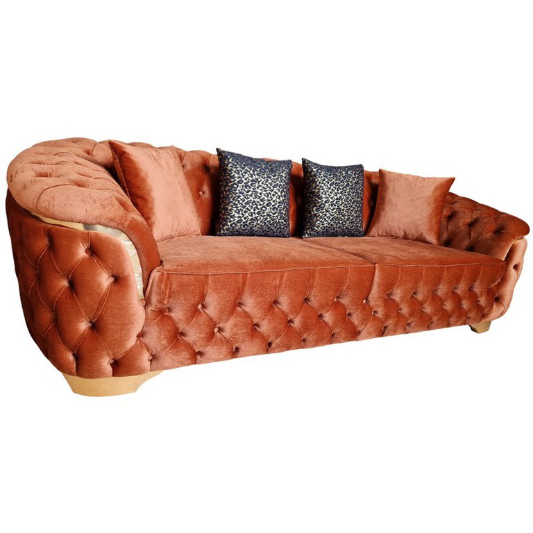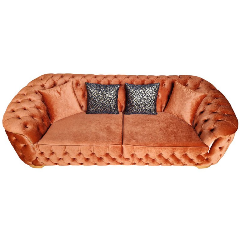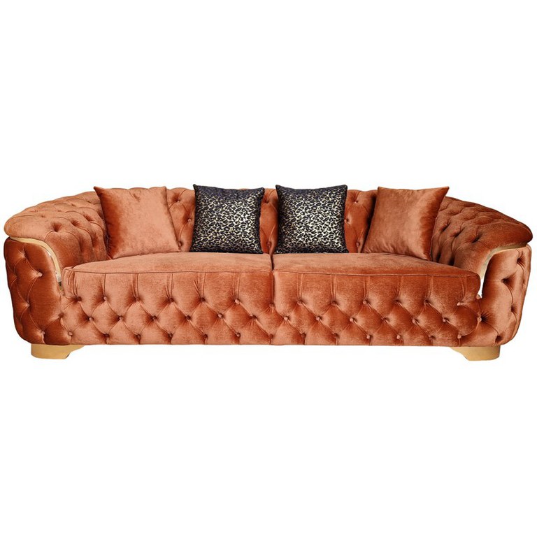 Canapea Fixa Okyanus, 250x100x75cm, 3 locuri, Luna V-08 Orange, Glasspandoor Lungime: 250 cm Latime: 100 cm Inaltime:75 cm Inaltime sezut: 45 cm Produsul este realizat pe structura de pal de 18mm, cu grinzi de rezistenta, din lemn de brad de 3x5cm si 5x5cm.