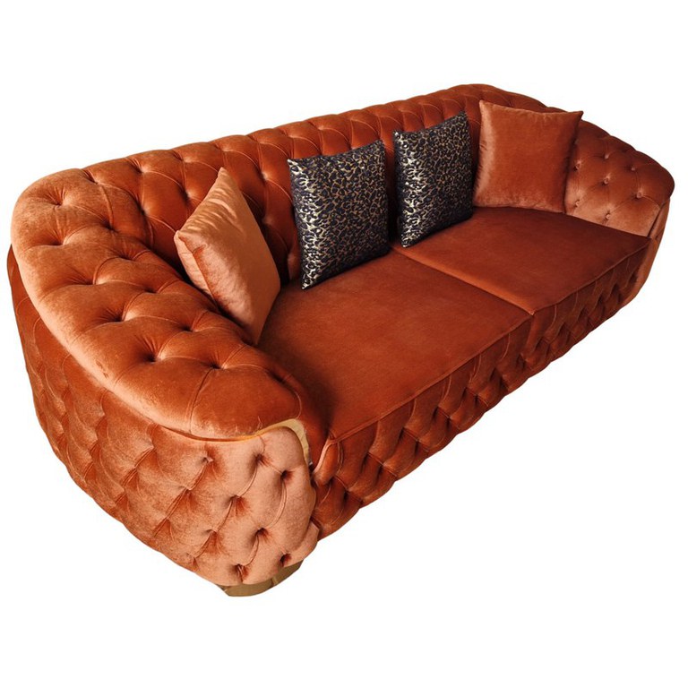 Canapea Fixa Okyanus, 250x100x75cm, 3 locuri, Luna V-08 Orange, Glasspandoor