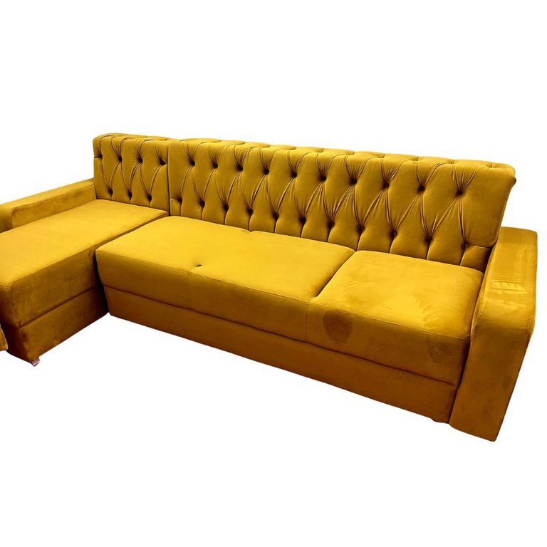 Colțar Fix Little Chester, 200x180x75cm, 5 locuri, Velutto 08 Mustard, în formă de "L", stanga, Glasspandoor Lungime: 200 cm Latime: 180 cm Inaltime:75 cm Inaltime sezut: 45 cm Produsul este realizat pe structura de pal de 18mm, cu grinzi de rezistenta, din lemn de brad de 3x5cm si 5x5cm.