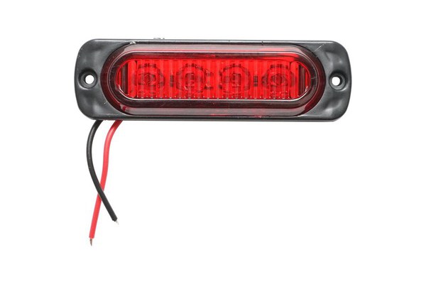 Descrierea produsului Brand Breckner Germany Model FR-0271-R Culoare Rosie Tensiune alimentare 12 - 24 V Numar LED-uri 4 Dimensiuni 95 x 30 mm Distanta intre suruburi 90 mm