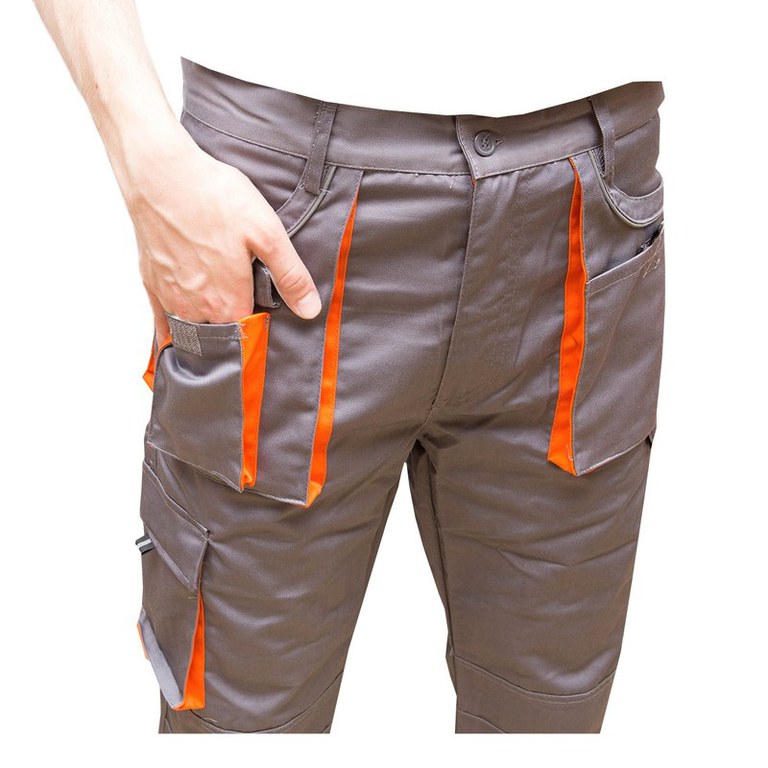 Pantaloni de lucru poliester cu bumbac 235g/m2, gri cu portocaliu marimea 48, Cod: BK77146, Brand: BRECKNER GERMANY
