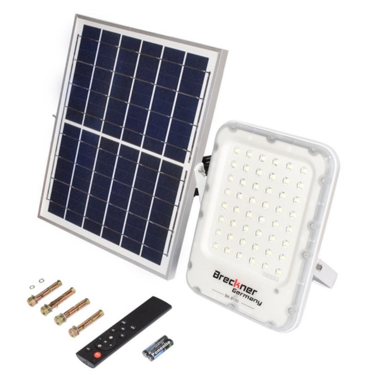 Proiector LED, 100W, cu panou solar policristalin 12W, telecomanda si acumulator inclus, Cod: BK87438 Echivalență: DISDM76, Breckner Germany