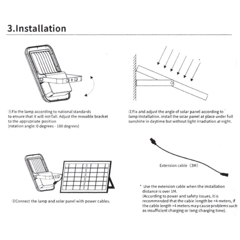 Vă prezentăm proiectorul cu LED-uri BK8743, o soluție de iluminat puternică cu o putere de 100 W. Acest proiector de înaltă calitate este echipat cu un panou solar policristalin de 12W, permițând o funcționare eficientă din punct de vedere energetic. Cu confortul unei telecomenzi și al unei baterii incluse, controlul iluminatului dvs. nu a fost niciodată mai ușor. BK8743 este echivalent cu DISDM76 și este fabricat cu mândrie de Breckner Germania. Iluminați-vă spațiul cu acest proiector LED de top pentru luminozitate și eficiență optime. REZISTENTA LA APA Lampă iluminat 10W cu panou solar 12W Breckner Germany contine: Proiector LED 96 LED-uri Panou solar: 12W policristalin Baterie: 3.2V 12Ah LiFePO Cablu conectare 3m Telecomandă Kit montaj Lampă iluminat 10W cu panou solar 12W Breckner Germany specificatii: Brand Breckner Germany LED 700 Lumen Putere panou solar policristalin 12 W Capacitate baterie 3.2V 12Ah LiFePO Dimensiune lampa 260 x 197 x 55 mm Dimensiune panou solar 350 x 250 x 17 mm Numar LED-uri 96 (700 Lumen/ 12W) Timp de incarcare 5-6 ore Timp de descarcare 8-18 ore Temperatura culoare 5500K / 6000K CW Clasa IP IP66