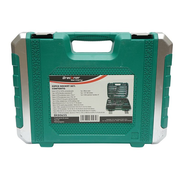 Trusa chei tubulare 4-32mm si chei fixe combinate 8-22mm, biti, hex, torx, antrenor cu clichet 82 piese , Cod: BK80655, Brand: BRECKNER GERMANY