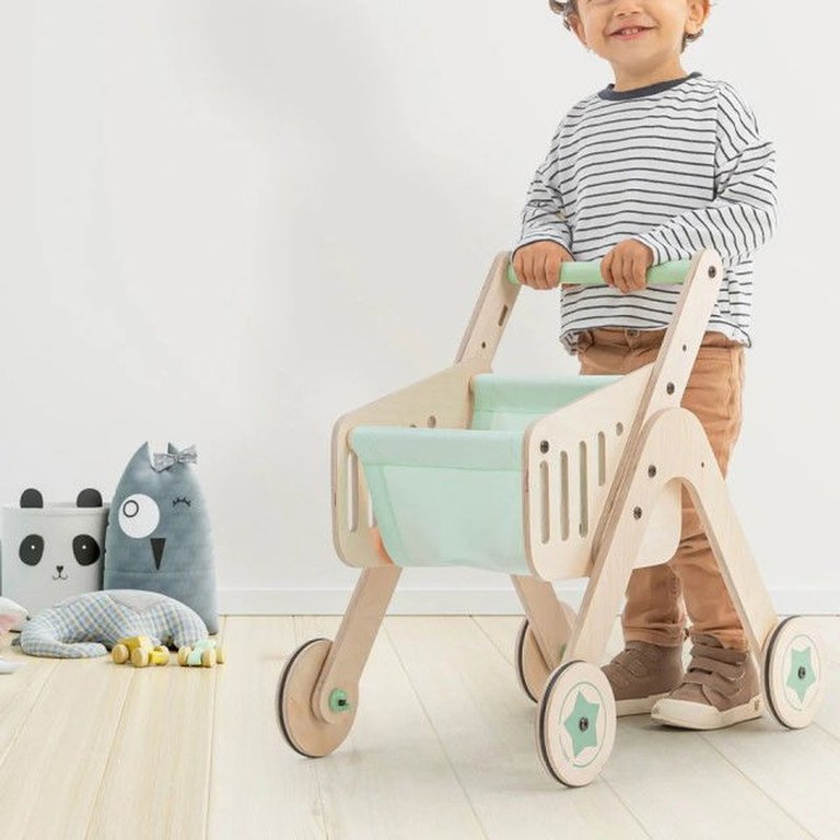 Antepremergator din lemn 2 in 1 MamaToyz cu cos de cumparaturi