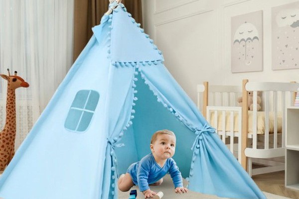 Cort de joaca pentru copii, cort teepee, stil indian, Empria, 110x110x110 cm, Bleu