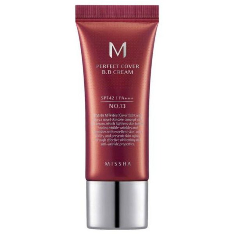 Crema BB cu Protectie Ridicata - Missha BB Cream M Perfect Cover SPF42/PA+++, nuanta 13/Bej Stralucitor, 20 ml - Produs din sectiunea Produse Cosmetice, categoria Machiaj, subcategoria Fond de ten & Pudra la pretul de 43 Lei; Producator: Missha