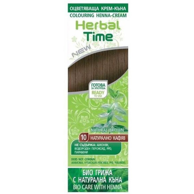 Crema Coloranta pe Baza de Henna Rosa Impex Herbal Time, nuanta 10 Natural Brown, 75ml - Produs din sectiunea Produse Cosmetice, categoria Vopsea de Par si Oxidant, subcategoria Vopsea Fara Amoniac la pretul de 21 Lei; Producator: Rosa Impex