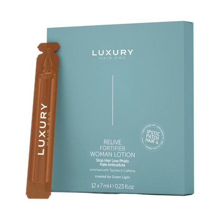 Fiole Anticaderea Parului pentru Femei - Relive Fortifier Woman Lotion Luxury Hair Pro, Green Light, 12 x 7 ml - Produs din sectiunea Produse Cosmetice, categoria Ingrijirea parului, subcategoria Tratamente pentru par la pretul de 160 Lei; Producator: Green Light