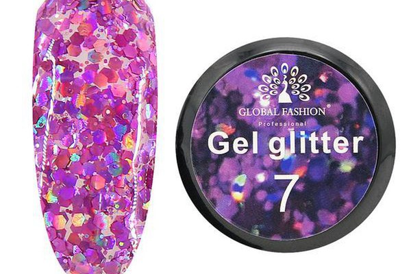 Gel color cu sclipici, Global Fashion,Glitter, 5 gr ,Violet 07 - Produs din sectiunea Produse Cosmetice, categoria Maini si unghii, subcategoria Geluri UV Colorate la pretul de 14.4 Lei; Producator: Global Fashion