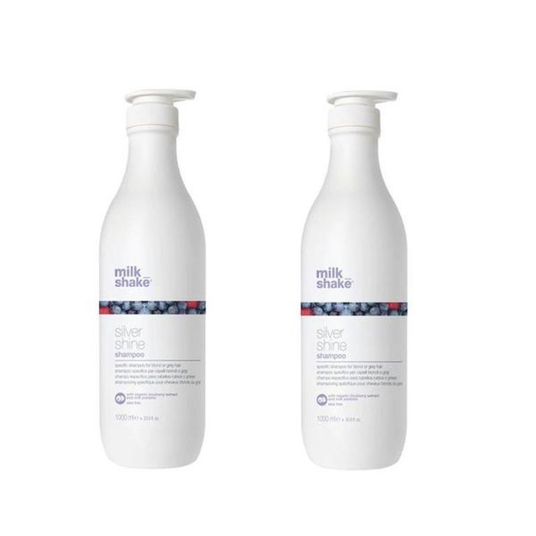 Pachet 2 x Sampon pentru Par Blond, Gri sau Alb - Milk Shake Silver Shine, 1000 ml - Produs din sectiunea Produse Cosmetice, categoria Pachete Promo, subcategoria la pretul de 330 Lei; Producator: Milk Shake