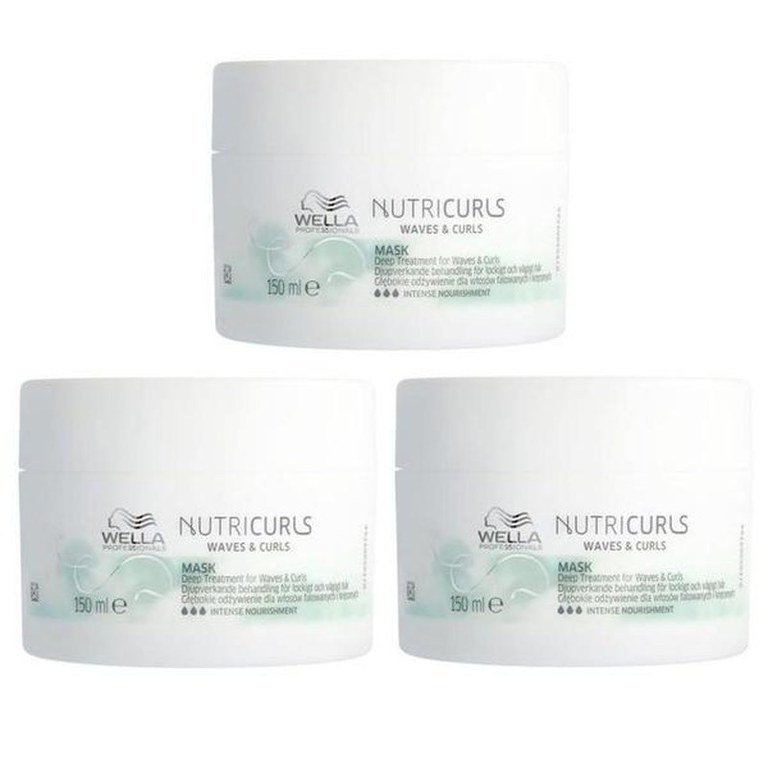 Pachet 3 x Masca Hidratanta pentru Parul Cret si Ondulat - Wella Professionals Nutricurls Waves & Curls Mask Deep Treatment, 150 ml - Produs din sectiunea Produse Cosmetice, categoria Pachete Promo, subcategoria la pretul de 229 Lei; Producator: Wella Professionals