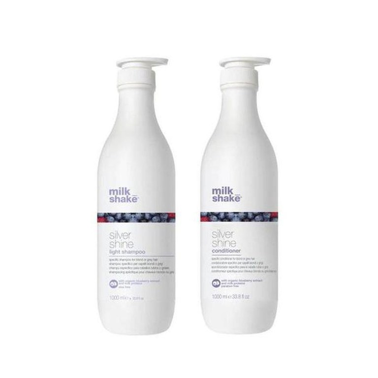 Pachet pentru Par Blond, Gri sau Alb - Milk Shake Silver Shine: Sampon Silver Shine Light Shampoo, 1000 ml + Balsam Silver Shine Conditioner, 1000 ml - Produs din sectiunea Produse Cosmetice, categoria Pachete Promo, subcategoria la pretul de 419 Lei; Producator: Milk Shake