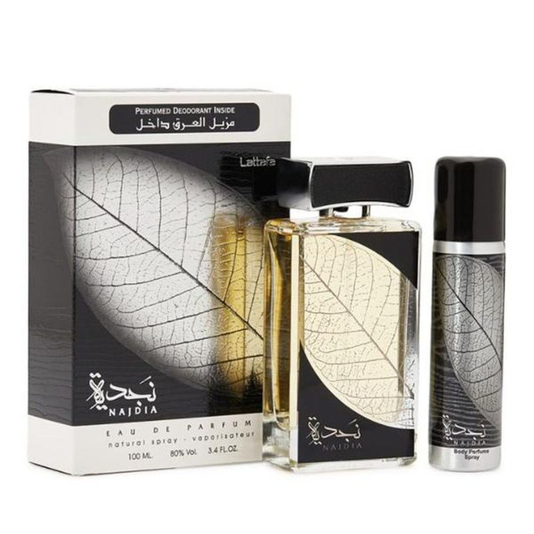 Set Apa de Parfum, 100 ml + Deodorant Spray, 50 ml, pentru Barbati - Lattafa Perfumes, Najdia, 1 set - Produs din sectiunea Parfumuri, categoria Parfumuri pentru barbati, subcategoria Apa de parfum barbati la pretul de 88 Lei; Producator: Lattafa