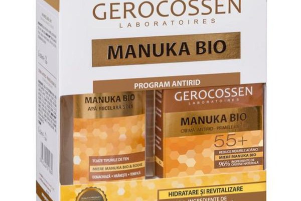 Set Cadou Manuka Bio - Crema Antirid pentru Riduri Profunde 55+, 50 ml si Apa Micelara 3 in 1, 300 ml, Gerocossen, 1 pachet - Produs din sectiunea Produse Cosmetice, categoria Seturi Cadou, subcategoria la pretul de 50 Lei; Producator: Gerocossen