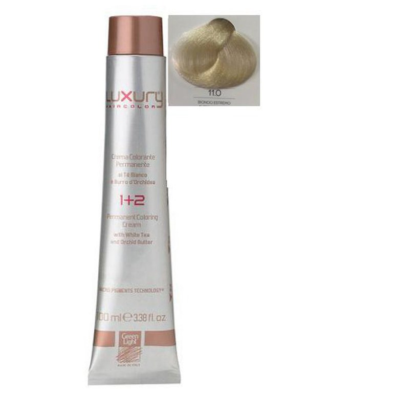 Vopsea Crema Permanenta Luxury Green Light, nuanta Biondo Estremo 11.0, 100 ml - Produs din sectiunea Produse Cosmetice, categoria Vopsea de Par si Oxidant, subcategoria Vopsea Profesionala la pretul de 38 Lei; Producator: Green Light