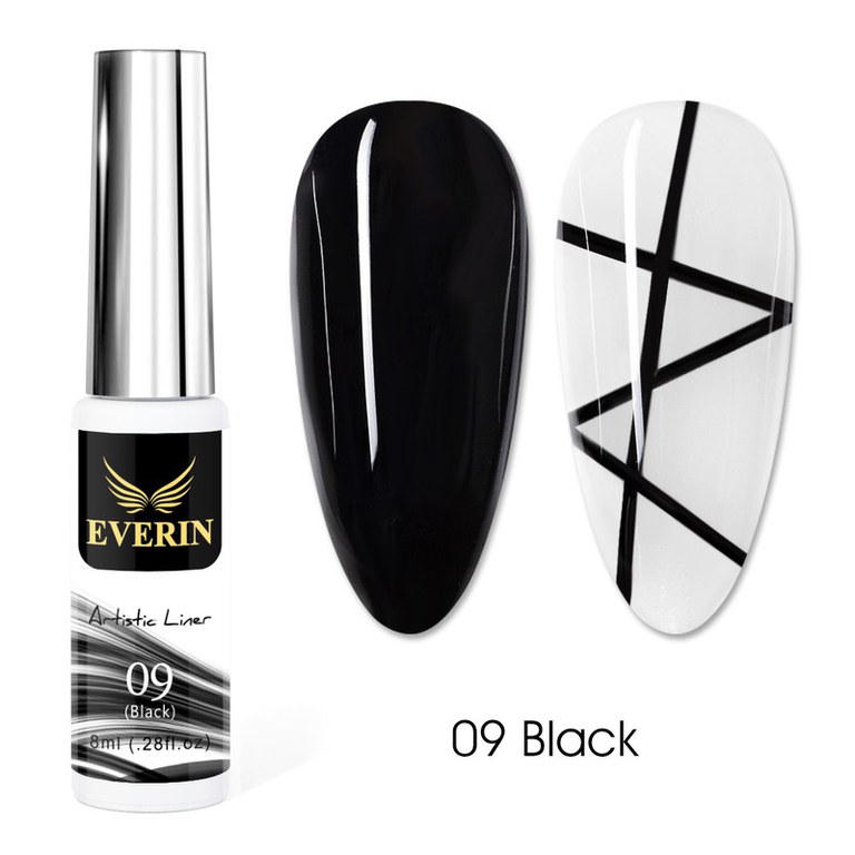 Artistic Liner Gel EVERIN 8ml – 09 | Gel liner negru intens pentru contururi precise și nail art profesional