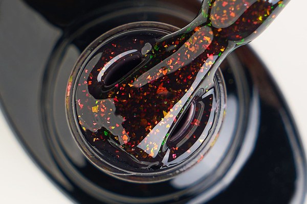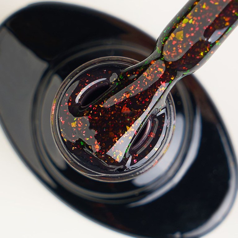 Colorful Rubber Base Kievskaya CF28 TPO Free – bază rubber color cu sclipici cupru și reflexii verzi, ideală pentru manichiuri moderne și sofisticate.