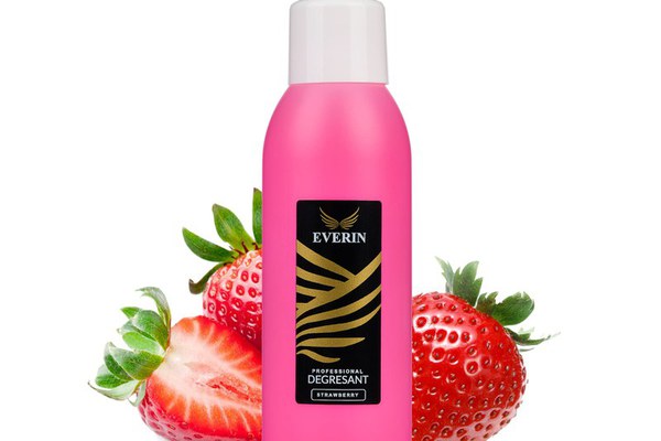 Degresant Everin 570ml – Căpșuni: cleaner profesional pentru unghii, elimină impuritățile și pelicula lipicioasă, cu aromă plăcută de căpșuni. Ideal pentru saloane și tehnicieni profesioniști.