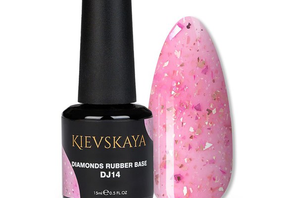 Diamonds Rubber Base Kievskaya Nr. 14 – bază rubber color profesională roz intens cu particule aurii. Se aplică peste bază principală și oferă manichiuri feminine, strălucitoare și rezistente.