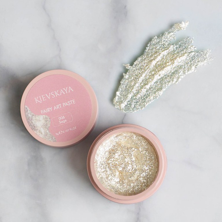 Fairy Art Paste Kievskaya 006 – Sage, pastă decorativă auriu-champagne cu reflexii argintii și efect perlat sofisticat. Ideală pentru decoruri 3D și manichiuri elegante. 5g.