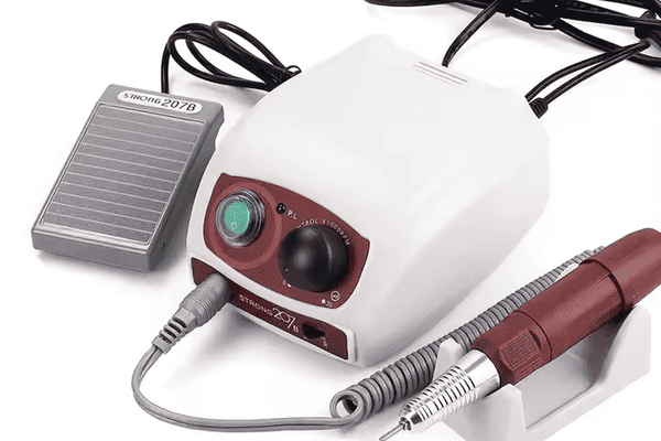 Freză electrică Strong 207B cu 65W și 35000 RPM, pedală inclusă și control precis al turației. Ideală pentru manichiură și pedichiură profesională.