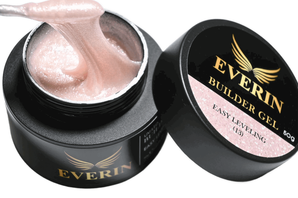 Everin Builder Gel Easy Leveling 13 – Gel de construcție autonivelant 15g, cu efect Crystal Rose Shimmer. Roz translucid, perlat și elegant, cu autonivelare perfectă și rezistență profesională.