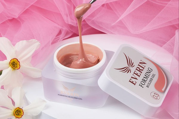 Gel de construcție Everin Forming Cover 03, 15g, gel vâscos tip jelly, ideal pentru extensii, apex, corecții și camuflaj. Control maxim, stabilitate ridicată și finisaj profesional natural.