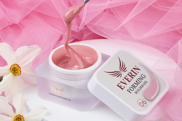 Gel de construcție Everin Forming Nude Beige 06, 50g, gel vâscos tip jelly cu nuanță nude bej naturală. Ideal pentru extensii, apex, camuflaj și manichiuri elegante realizate profesional.
