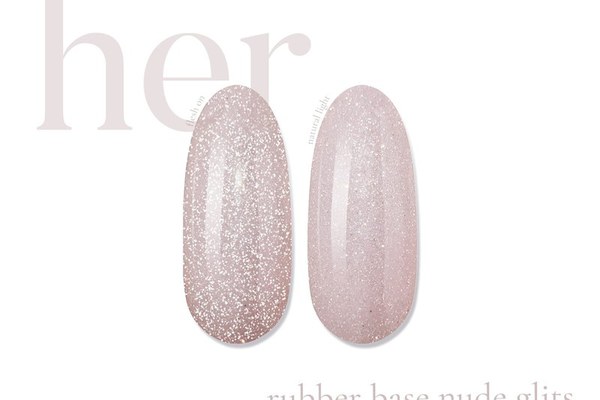 Her Rubber Base Nude Glits - Baza rubber color Her - Rubber Base Nude Glits | Datorita sclipiciului fin si rexlectorizant, cand este expusa la o