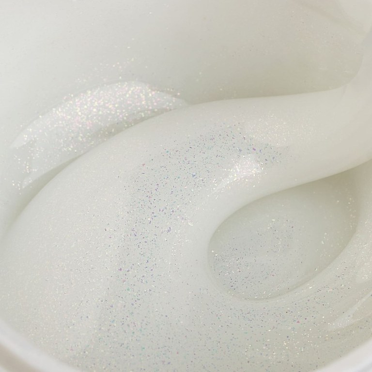 Liquid Polygel Everin 026 – Twilight Sky | HEMA & TPO Free | Alb perlat cu sclipici irizat
