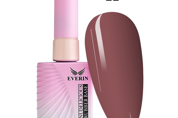 Rubber Base Everin Nudelicious 22 – bază cauciucată profesională HEMA & TPO Free, nuanță nude intens bej-maroniu, autonivelantă, pigmentată și potrivită ca bază sau culoare finală. 15ml.