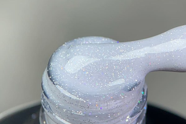 Rubber Base Everin Soo Glammy 01 – bază cauciucată alb-lăptoasă cu sclipici argintiu holografic, HEMA & TPO Free. Autonivelantă, elegantă și sigură. 12ml.