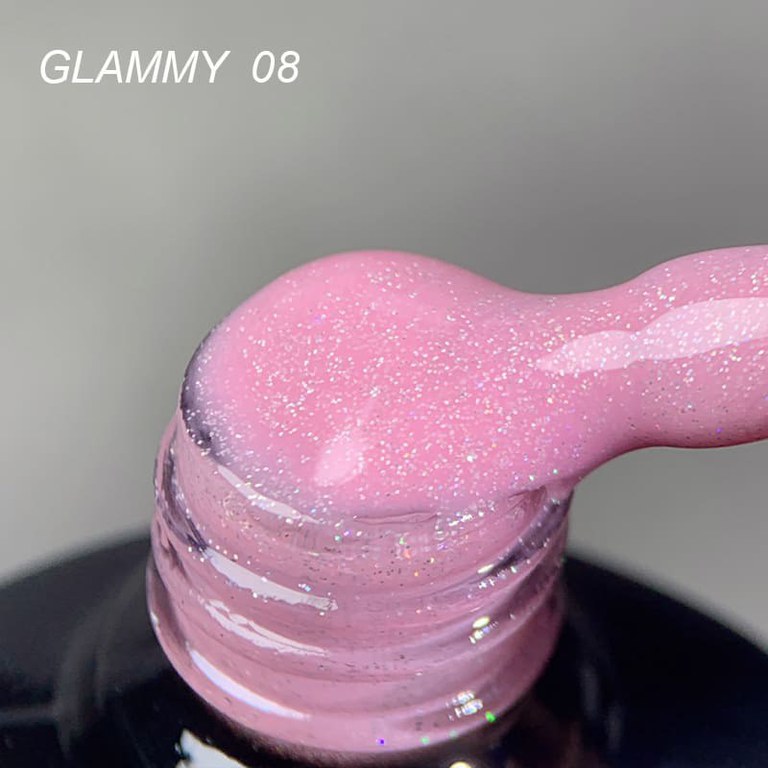 Rubber Base Everin Soo Glammy 08 – Bază Cauciucată Roz Intens cu Sclipici Holografic Fin, HEMA & TPO Free, 12ml