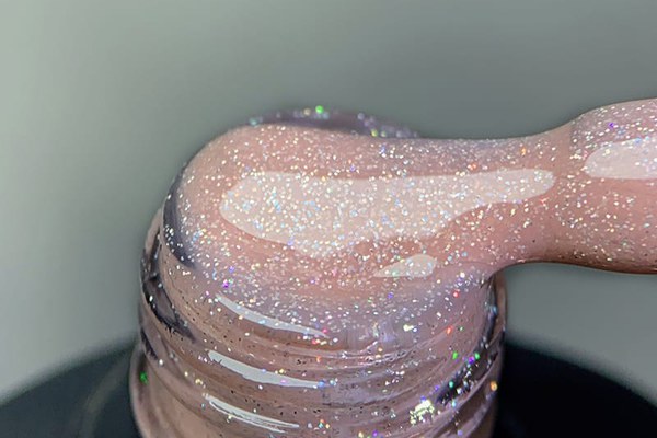 Rubber Base Everin Soo Glammy 12 – bază rubber bej-cafeniu cu sclipici holografic, HEMA & TPO Free. Autonivelantă, sigură și elegantă. 12ml.