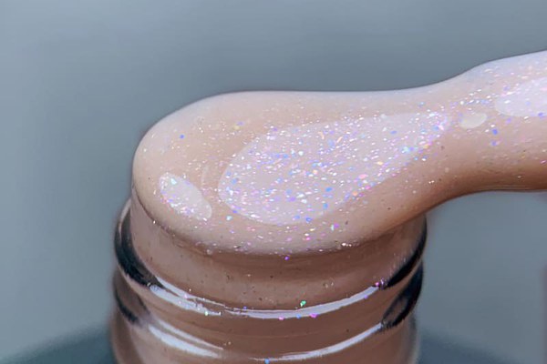 Rubber Base Everin Soo Glammy 17 – bază rubber nude caramel cu sclipici holografic fin, HEMA & TPO Free. Autonivelantă, elegantă și sigură. 12ml.