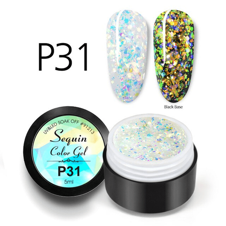 Sequin Color Gel P31 - P31 - Sequin Color Gel - Gel color cu paiete holographice. *Produsele prezentate sunt comercializate in ambalajul original al producatorului. Nuanta, tonul si intensitatea culorii pot varia in functie de monitor. Imaginile produselo