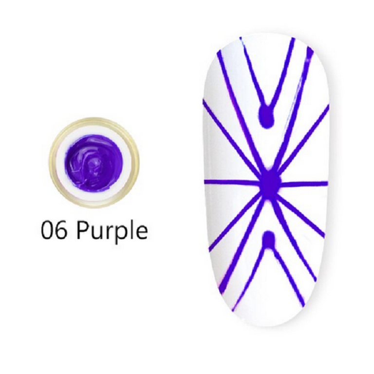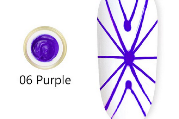 Spider Gel Nail Art CANNI 8ml Mov - SP6 - Spider Gel - Gelurile din gama CANNI Spider sunt ideale pentru Nail Art, textura iti permite sa realizezi linii subtiri si fine. Are textura de pasta ,putere mare de acoperire si foatre pigmentate. Se pot folosi
