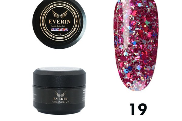 Twinkle Color Gel EVERIN 5ml – 19 este un gel color profesional roz intens, cu sclipici holografic multicolor. Ideal pentru manichiuri strălucitoare, feminine și moderne.