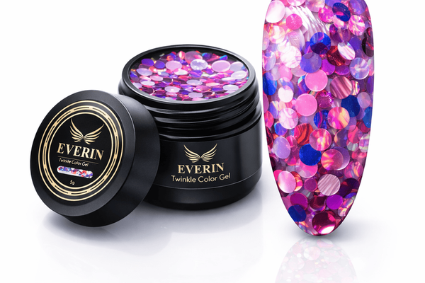 Twinkle Color Gel EVERIN 5ml – 20 este un gel color profesional cu nuanță fuchsia intensă și sclipici holografic irizat. Ideal pentru manichiuri spectaculoase, strălucitoare și moderne.
