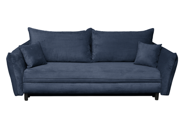 Canapea CAMILLE extensibila, 3 locuri, cu arcuri si lada depozitare, albastru, 238x115x95 cm