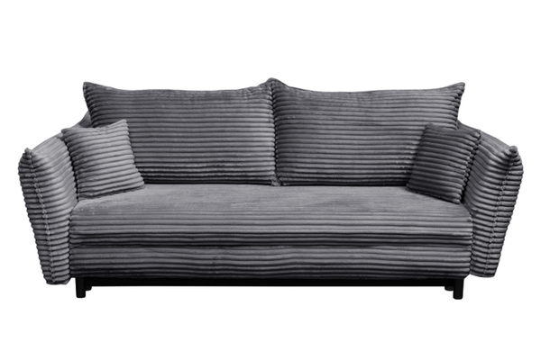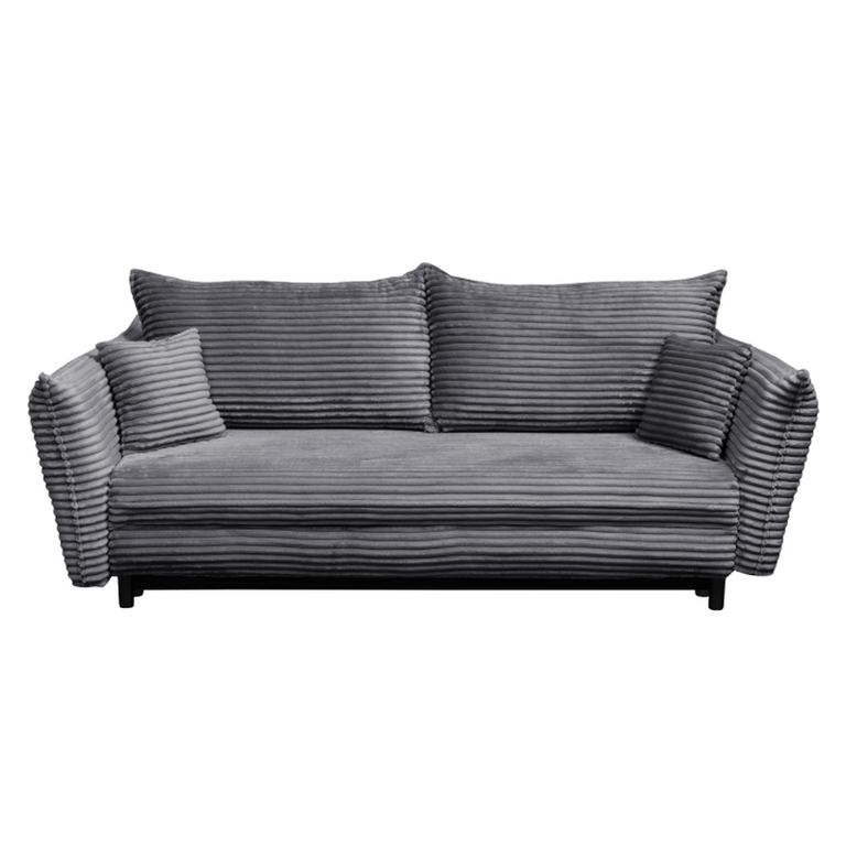 Canapea CAMILLE T extensibila, 3 locuri, cu arcuri si lada depozitare, gri inchis, 238x115x95 cm