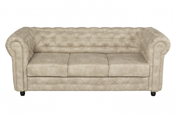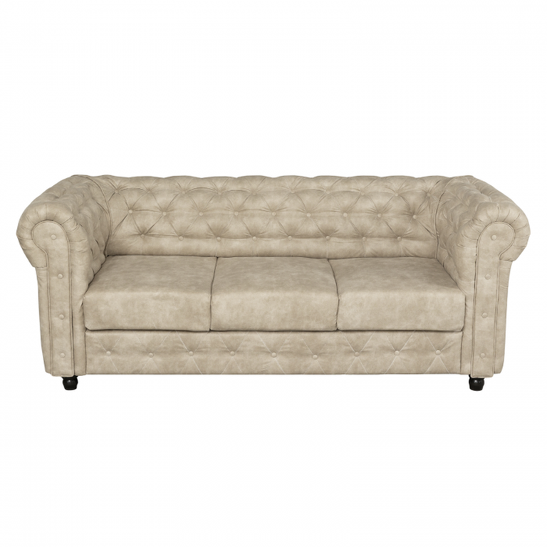 Canapea CHESTERFIELD extensibila, 3 locuri, cu arcuri, bej, 205x90x80 cm