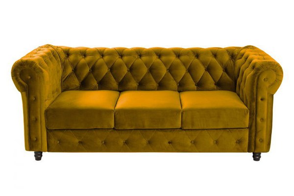 Canapea CHESTERFIELD extensibila, 3 locuri, cu arcuri, galben, 205x90x80 cm
