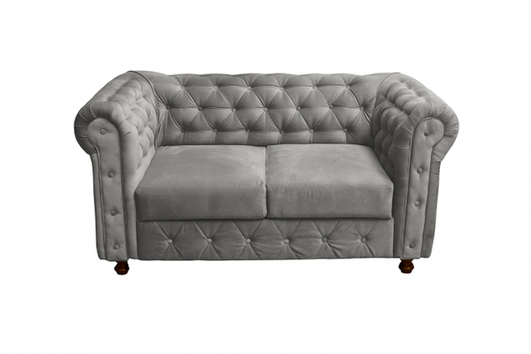 Canapea CHESTERFIELD fixa, 2 locuri, cu arcuri, gri deschis, 168x90x80 cm